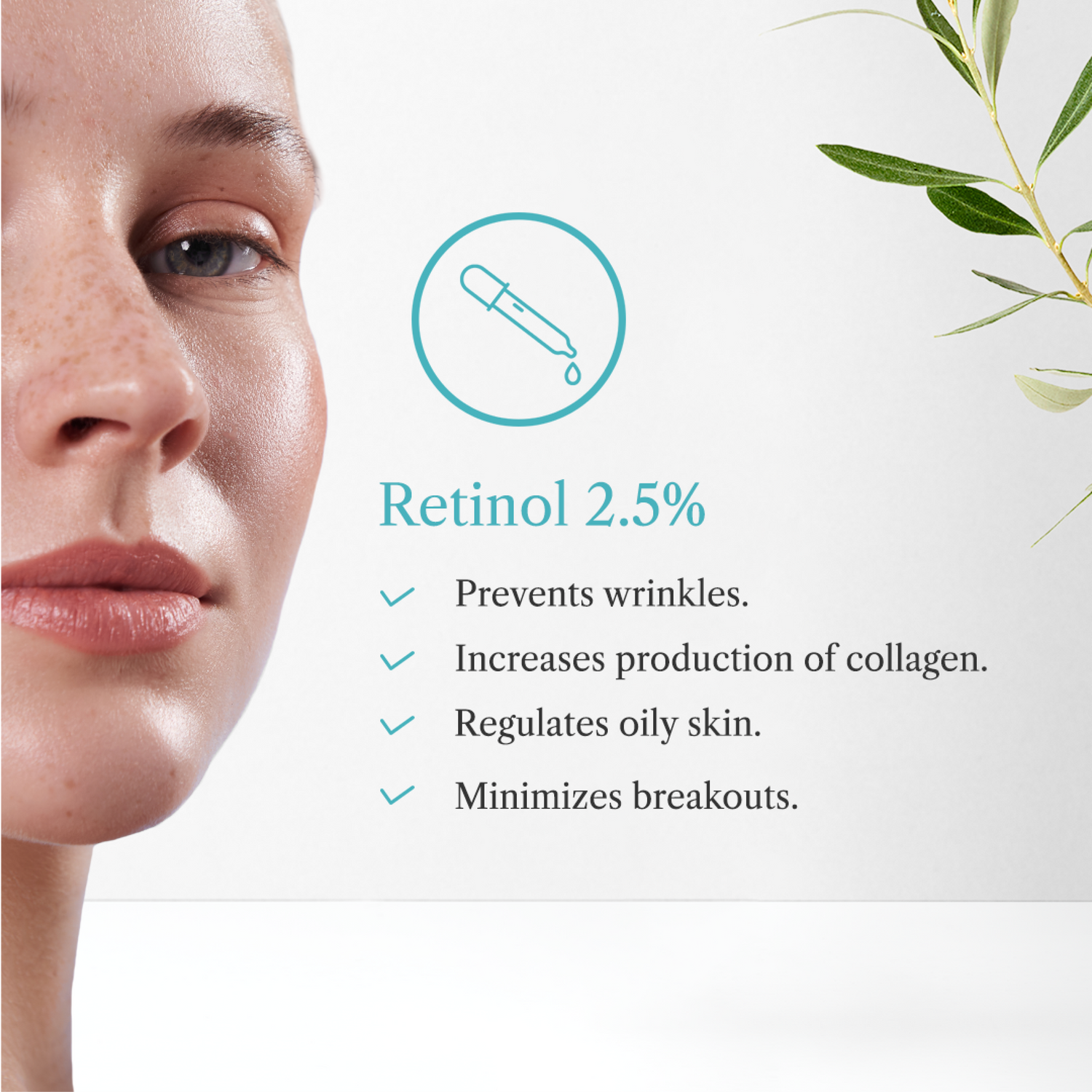 Prevents Wrinkles - Retinol is known to enhance the structure of the dermis and epidermis, which contributes to the reduction of fine lines and wrinkles.