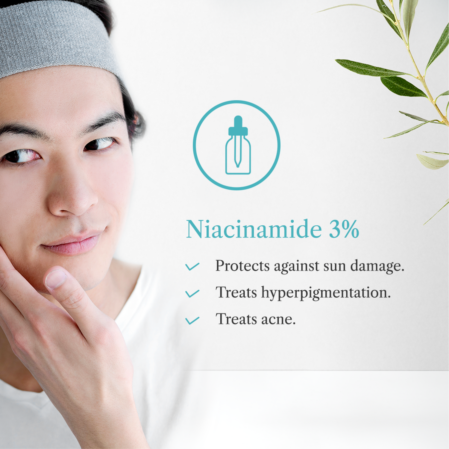 Treats acne - This active ingredient is excellent for the regulation of sebum production, which in turn prevents the formation of enlarged pores and ultimately acne and pimples.